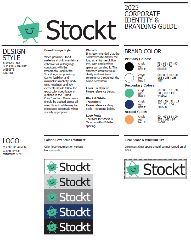 Worked with Marketing Director at Replenium to develop brand image for the creation of assets. Icon, wordmark, and brand standards designed by Lily Raines intended for use by Replenium for Stockt with Instacart.